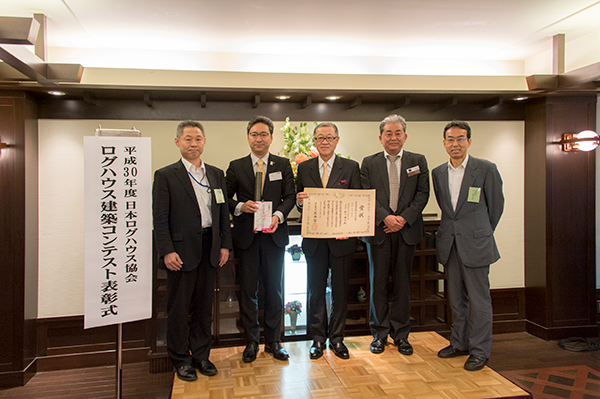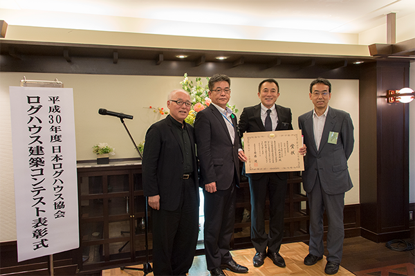 夕刻からは平成30年度のログハウス建築コンテストが行われ、審査委員の先生方の講評を交えながら14の受賞作品に賞状が授与されました。