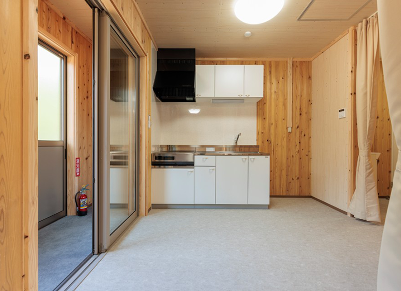 グッドデザイン金賞(経済産業大臣賞)を受賞1次公募から部材を簡略化し、シンプルで広さを感じられるように改良した2次公募時の木造仮設住宅群は、2012年度グッドデザイン金賞を受賞いたしました。